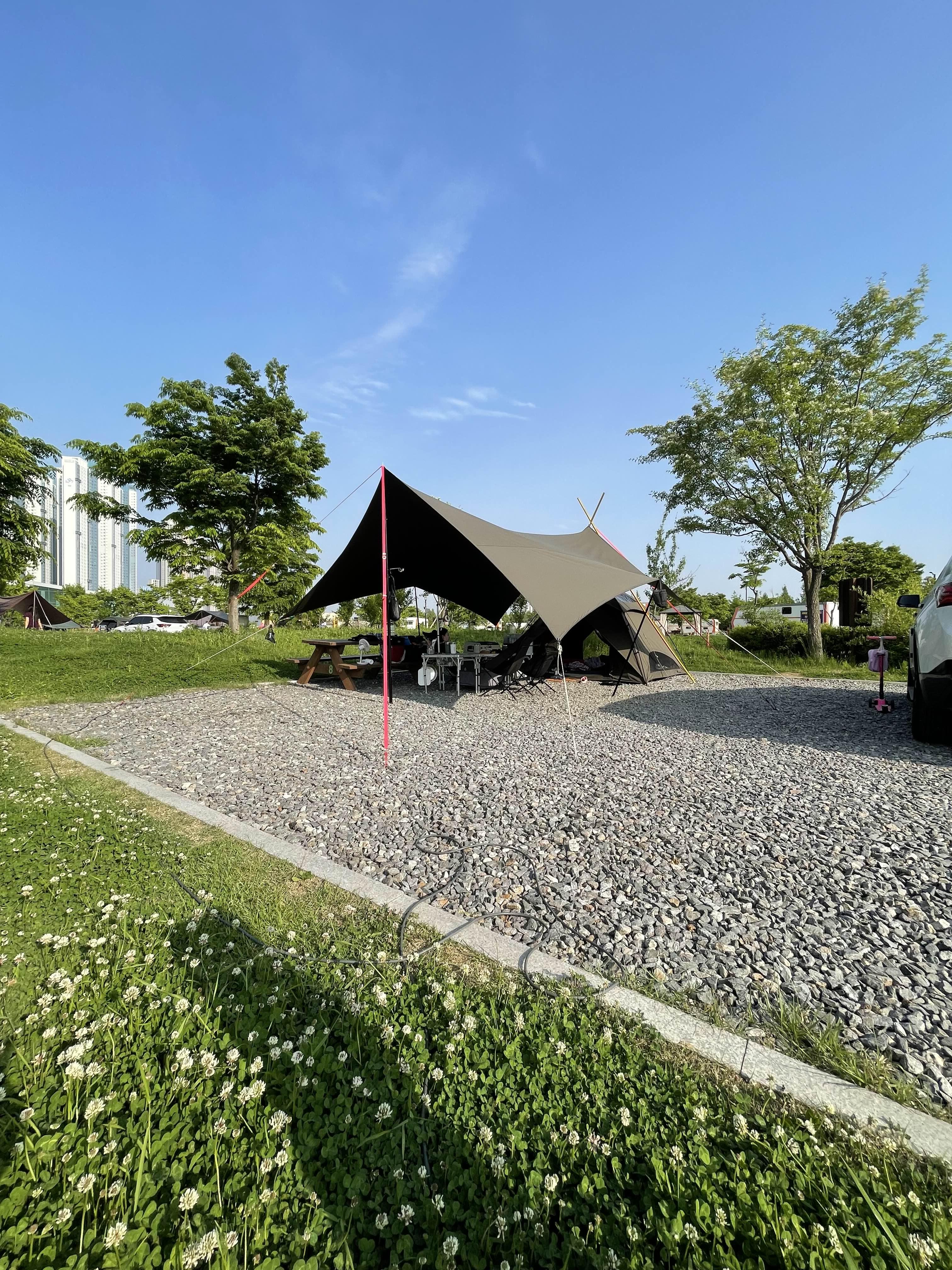 캠핑장의 위치는 고양에 위치한 킨텍스 캠핑장으로 집에서 아주 가까운 거리에 위치하고 있습니다.