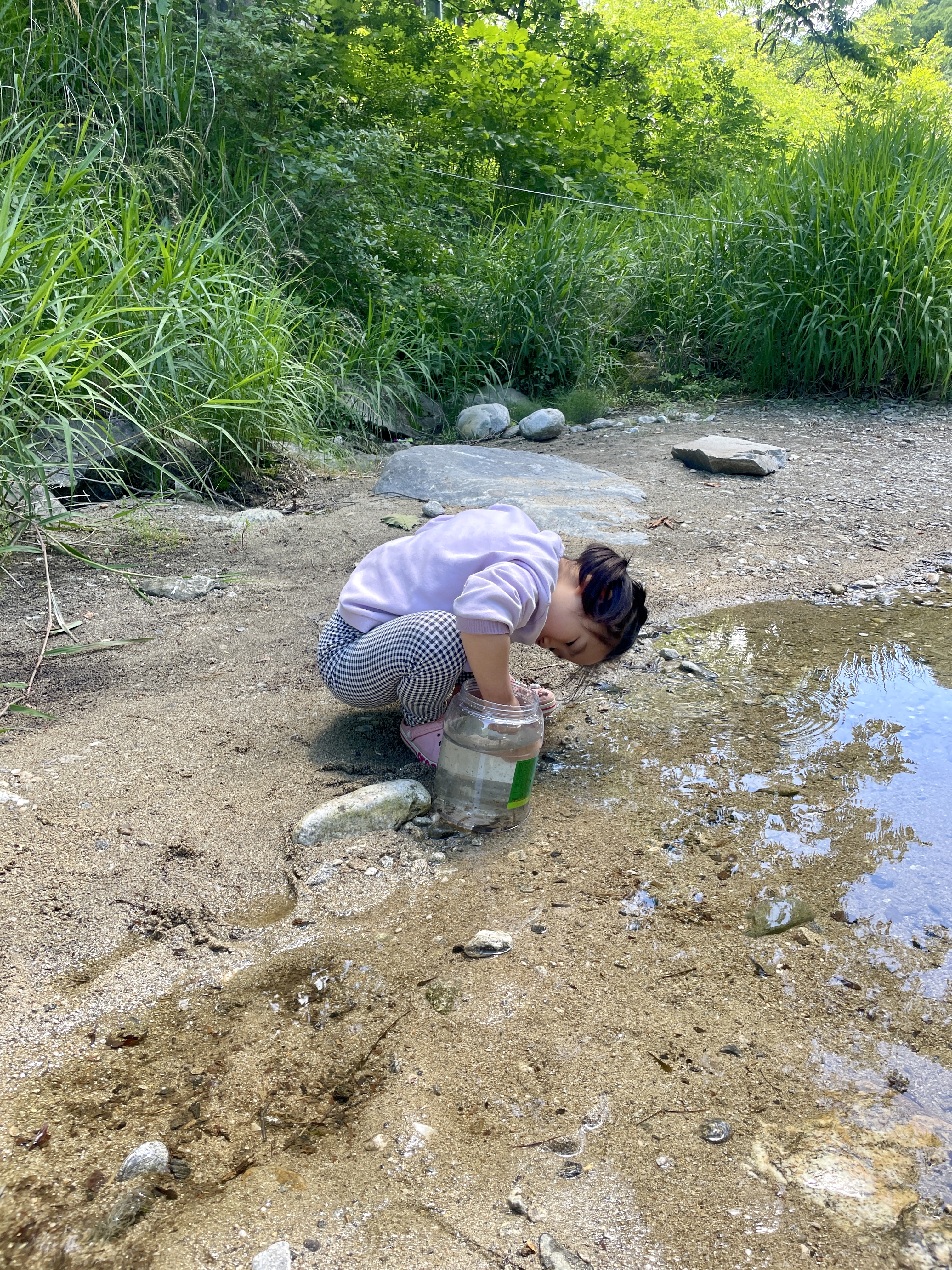 작은 개울에 올챙이를 잡아 큰 계곡에서 쉴수 있도록 구조하자고 하네요.