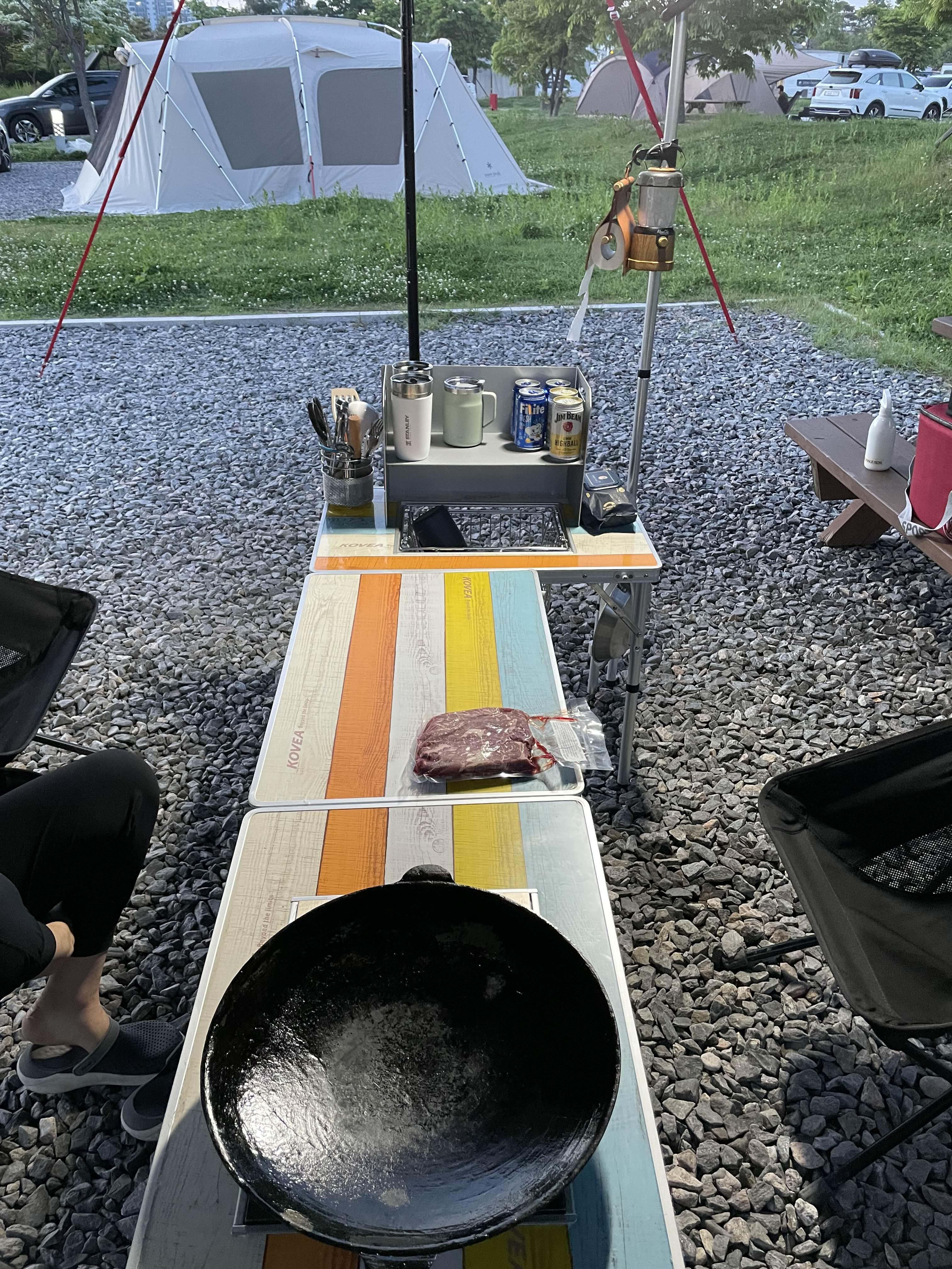 2시 입실이라 피칭하고 얼마 되지 않은 거 같은데 벌써 저녁 시간이네요. 저녁밥도 하고 조금씩 저녁 준비를 합니다.