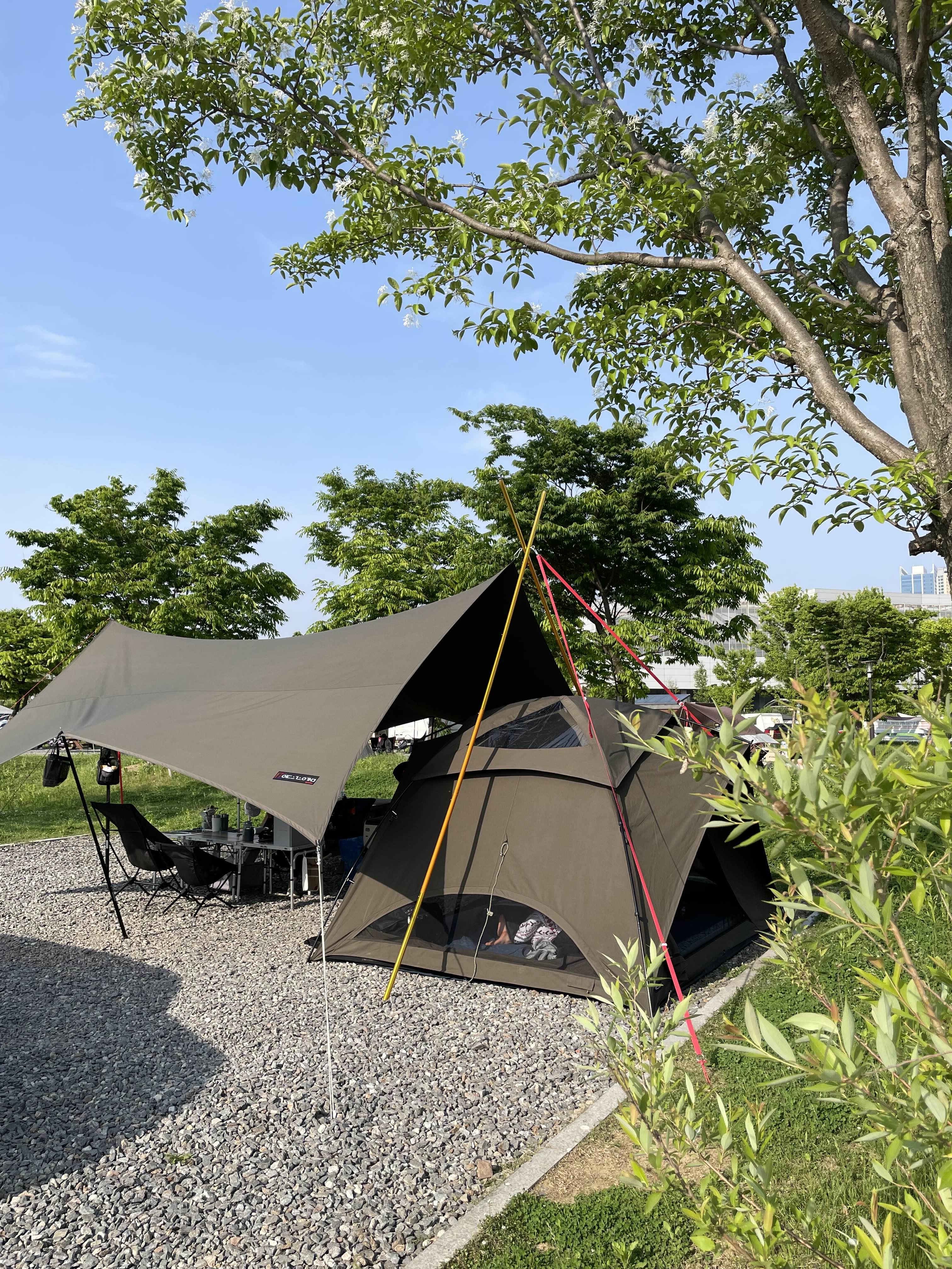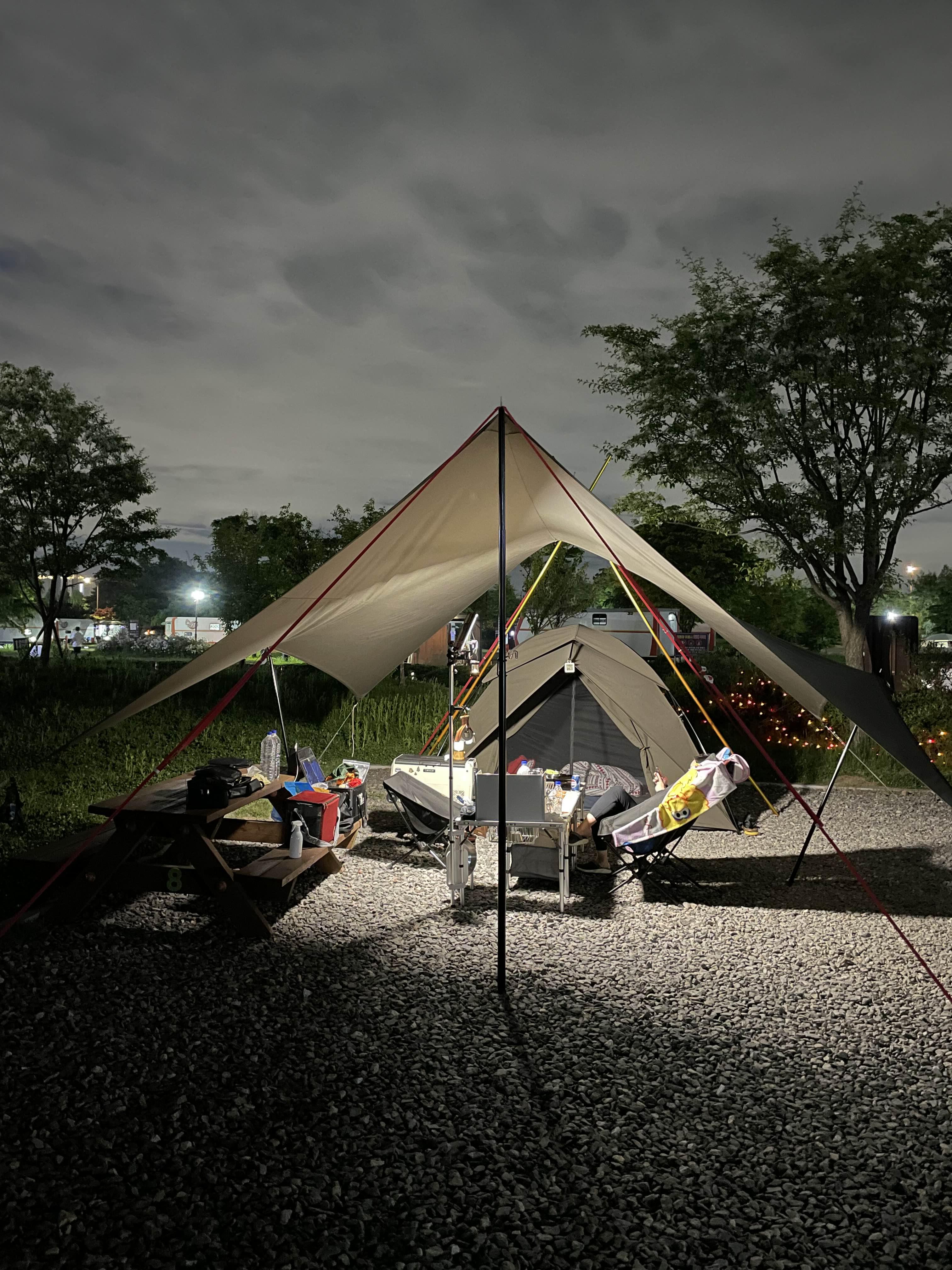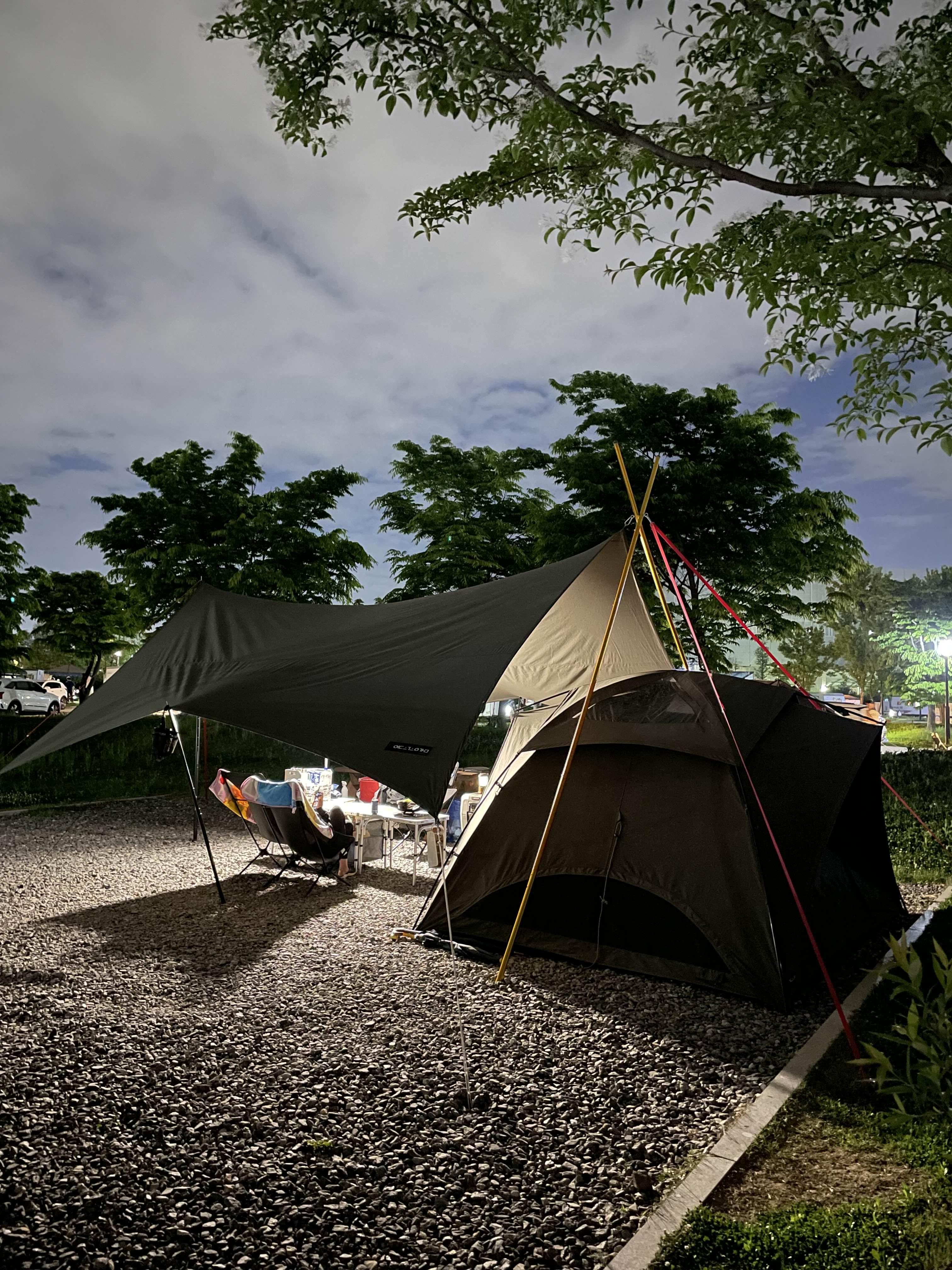 이번 주는 돔 + 타프를 챙겨 왔어요.