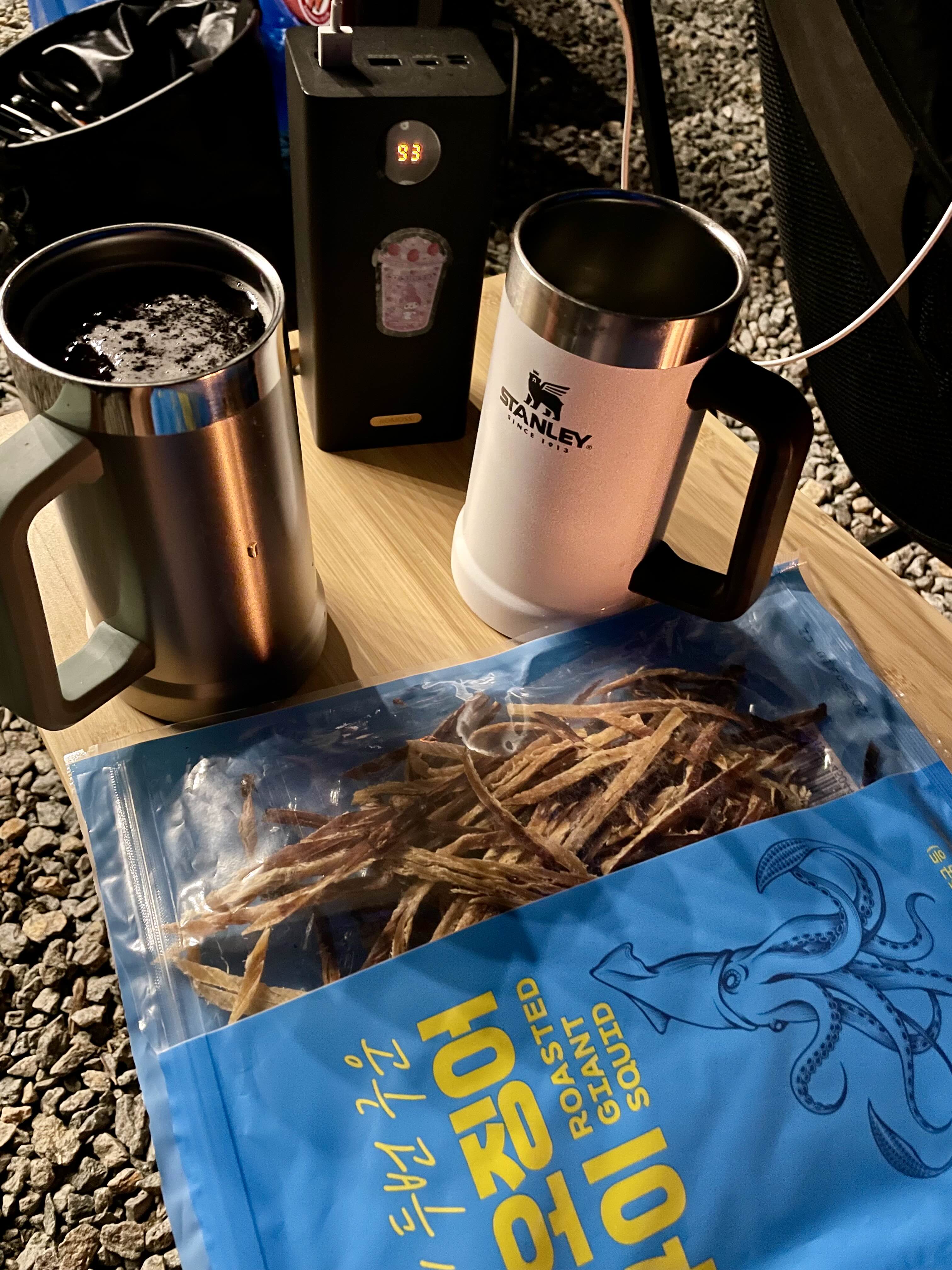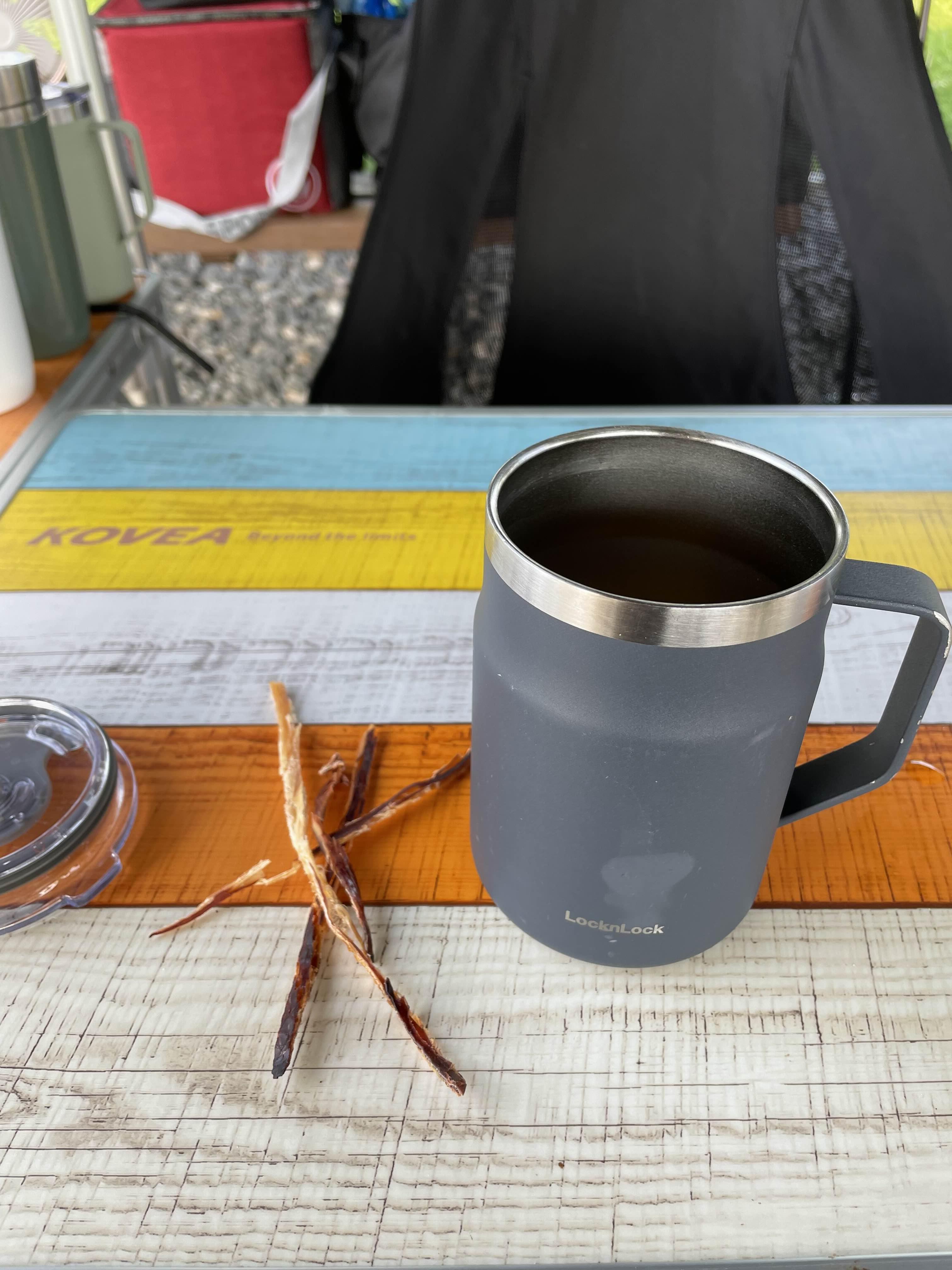 전날 밤 맥주 마시며 예보를 보니 바람이 심할 거라는 예보에 타프도 미리 걷고 주방 정리도 미리 했어요.