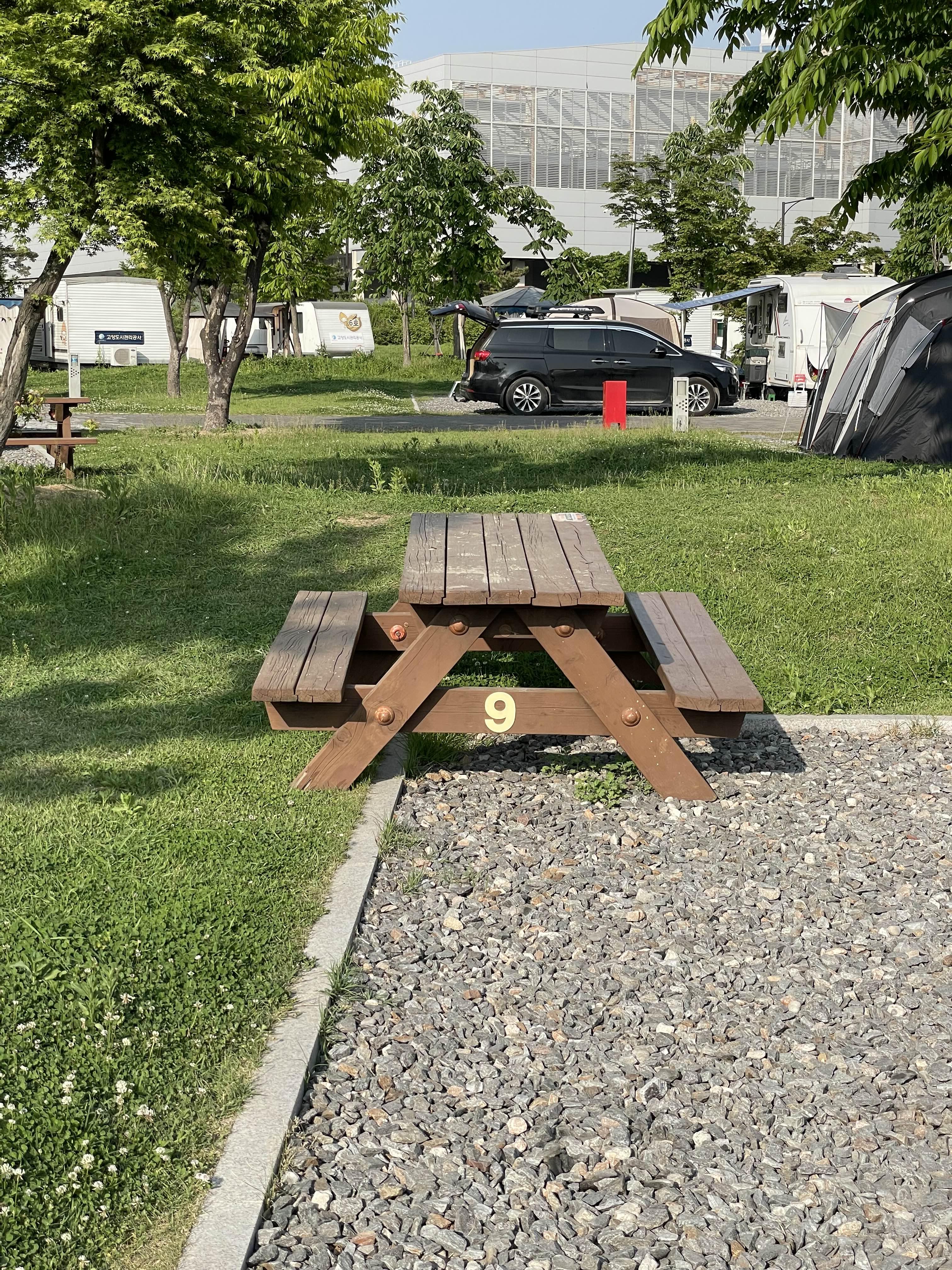 사이트 크기는 10m * 10m로 아주 넓은 편이며, 각 사이트마다 테이블이 1개씩 비치되어 있어 따로 테이블과 의자를 챙기지 않아도 되니 짐도 제법 줄어들 거 같아요.