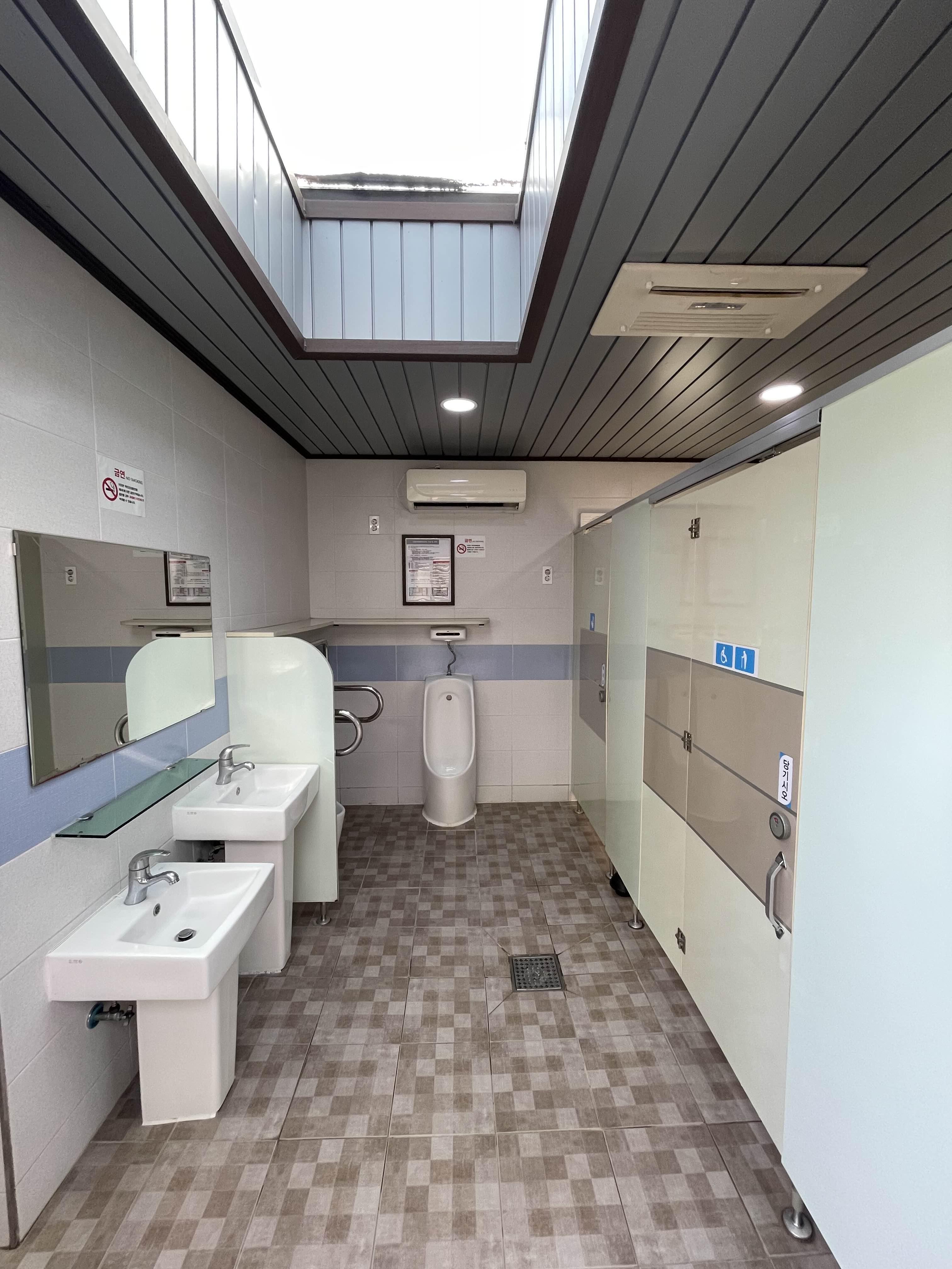 세척실, 화장실, 욕실이 모두 한 건물에 붙어 있으며, 지자체에서 운영 중이라 깔끔하게 관리되어 있었습니다.
