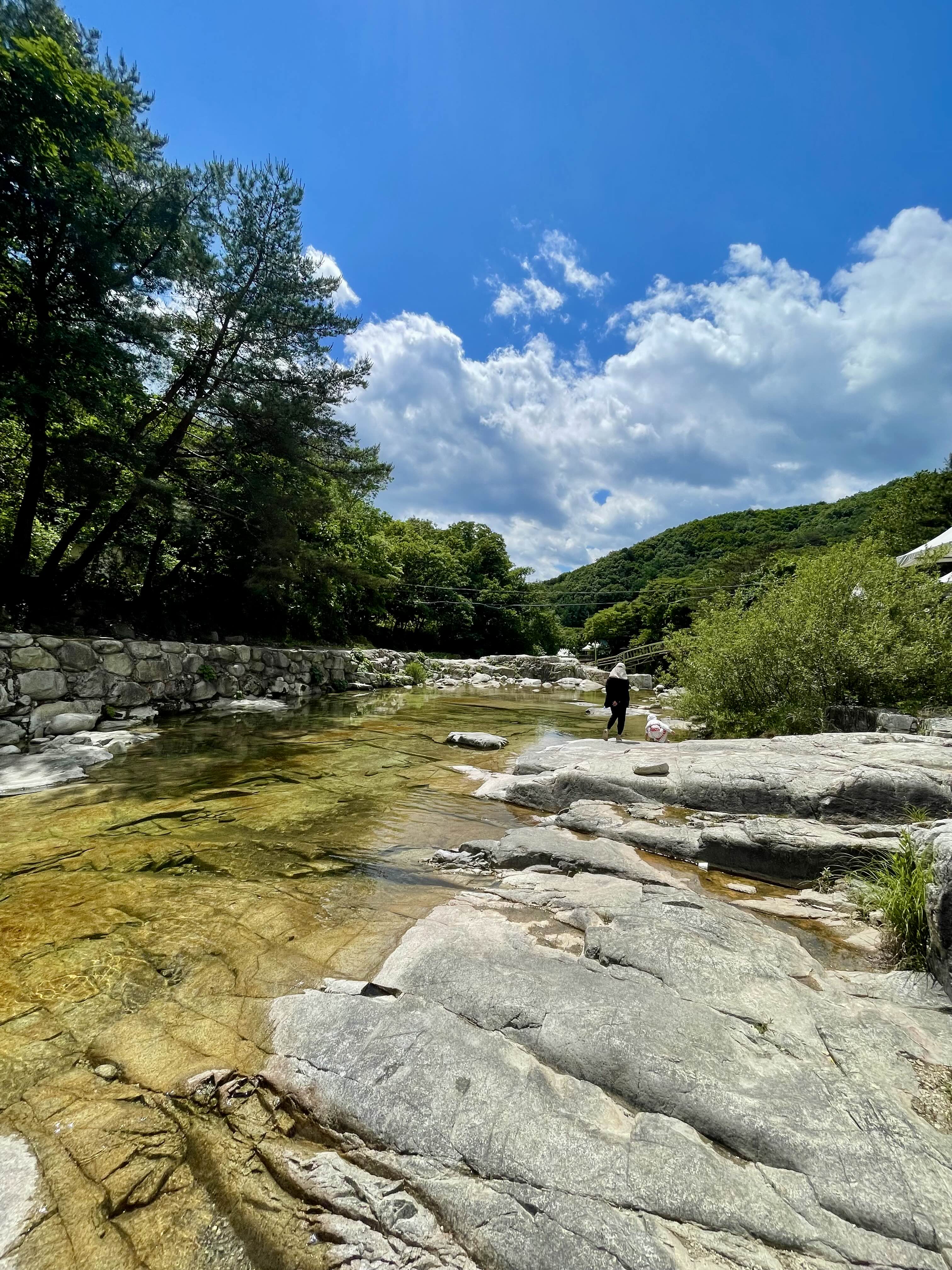큰 계곡에 올챙이를 풀어주고 본 하늘과 흐르는 계곡이 정말 이쁘네요.