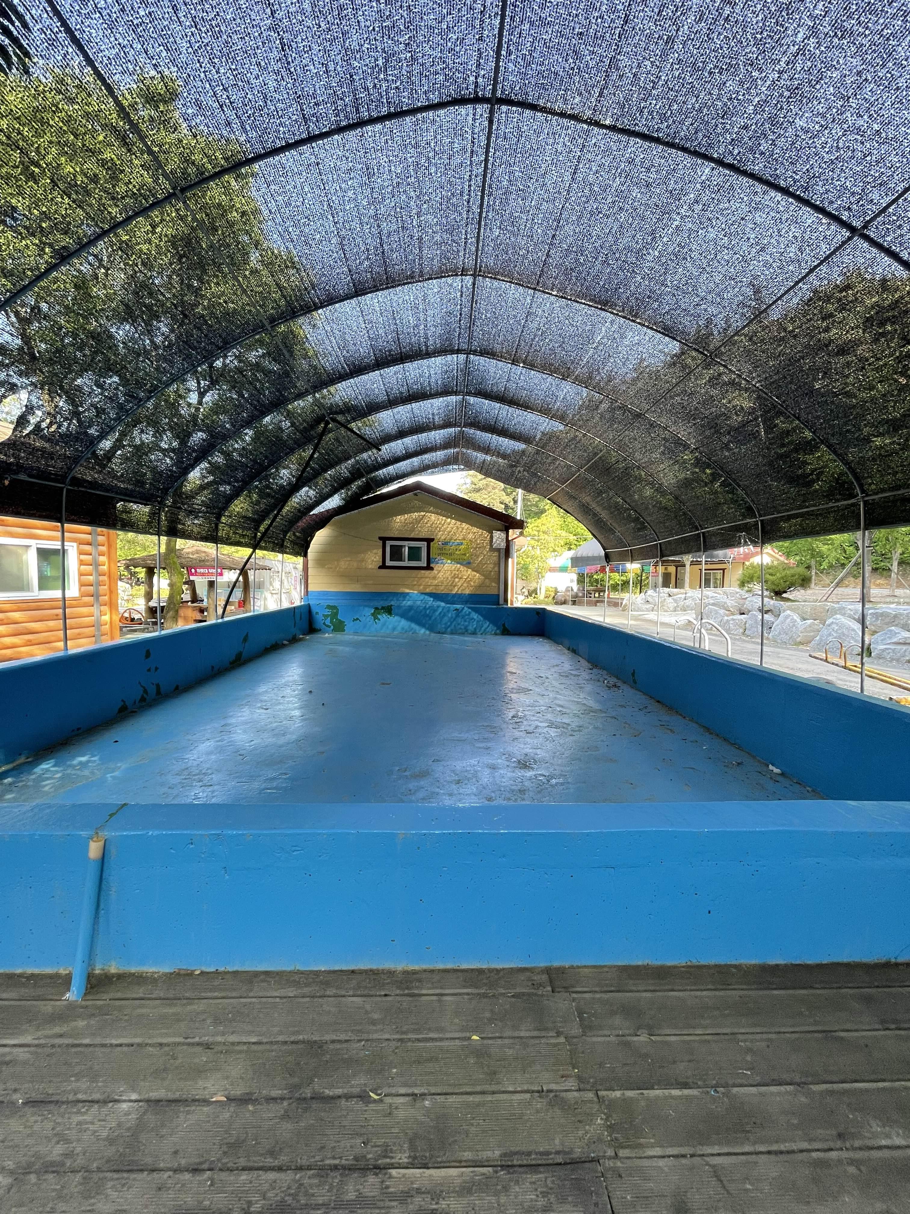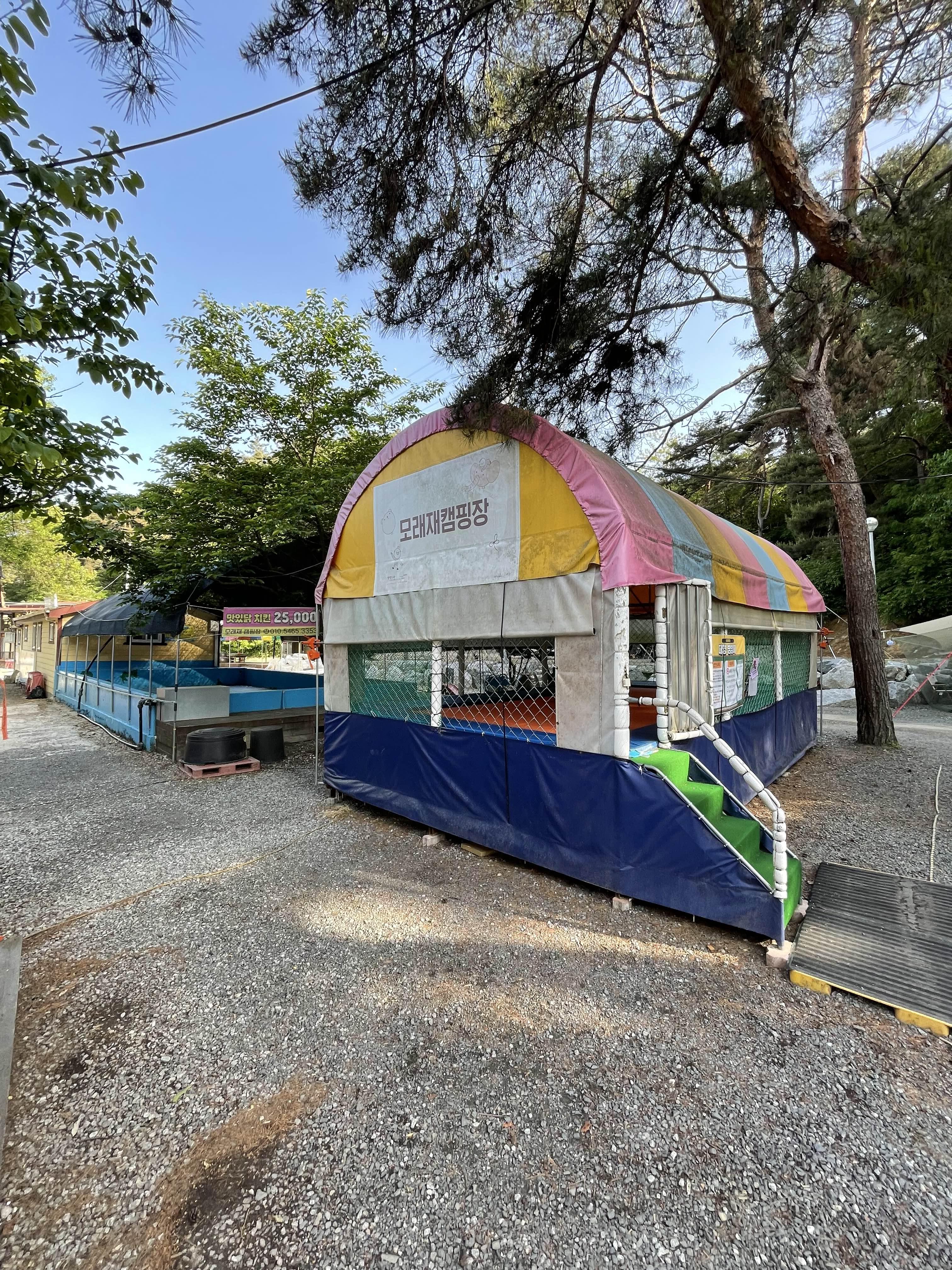 모래재캠핑장에는 아이들이 놀수 있도록 수영장과 방방이가 있어요.
