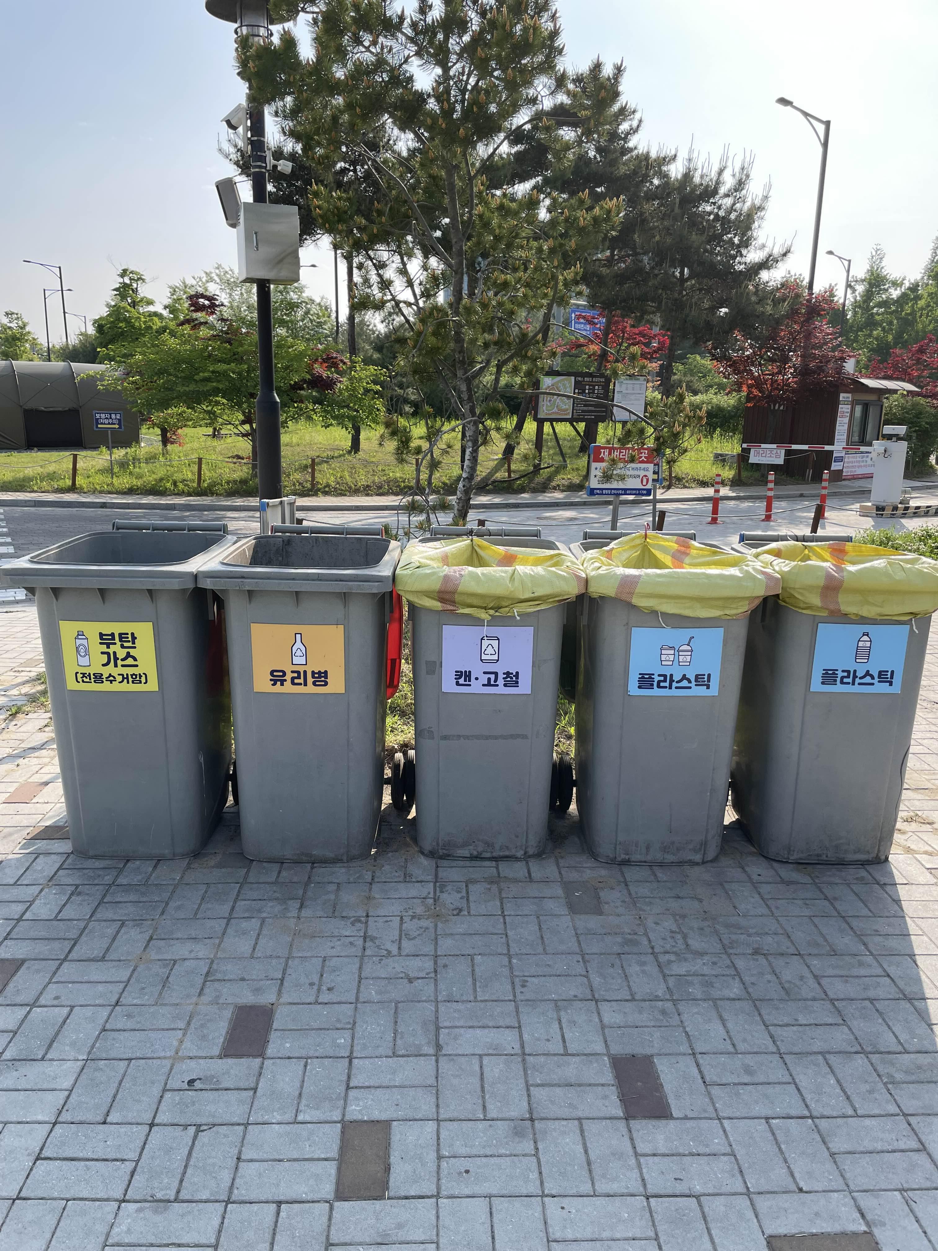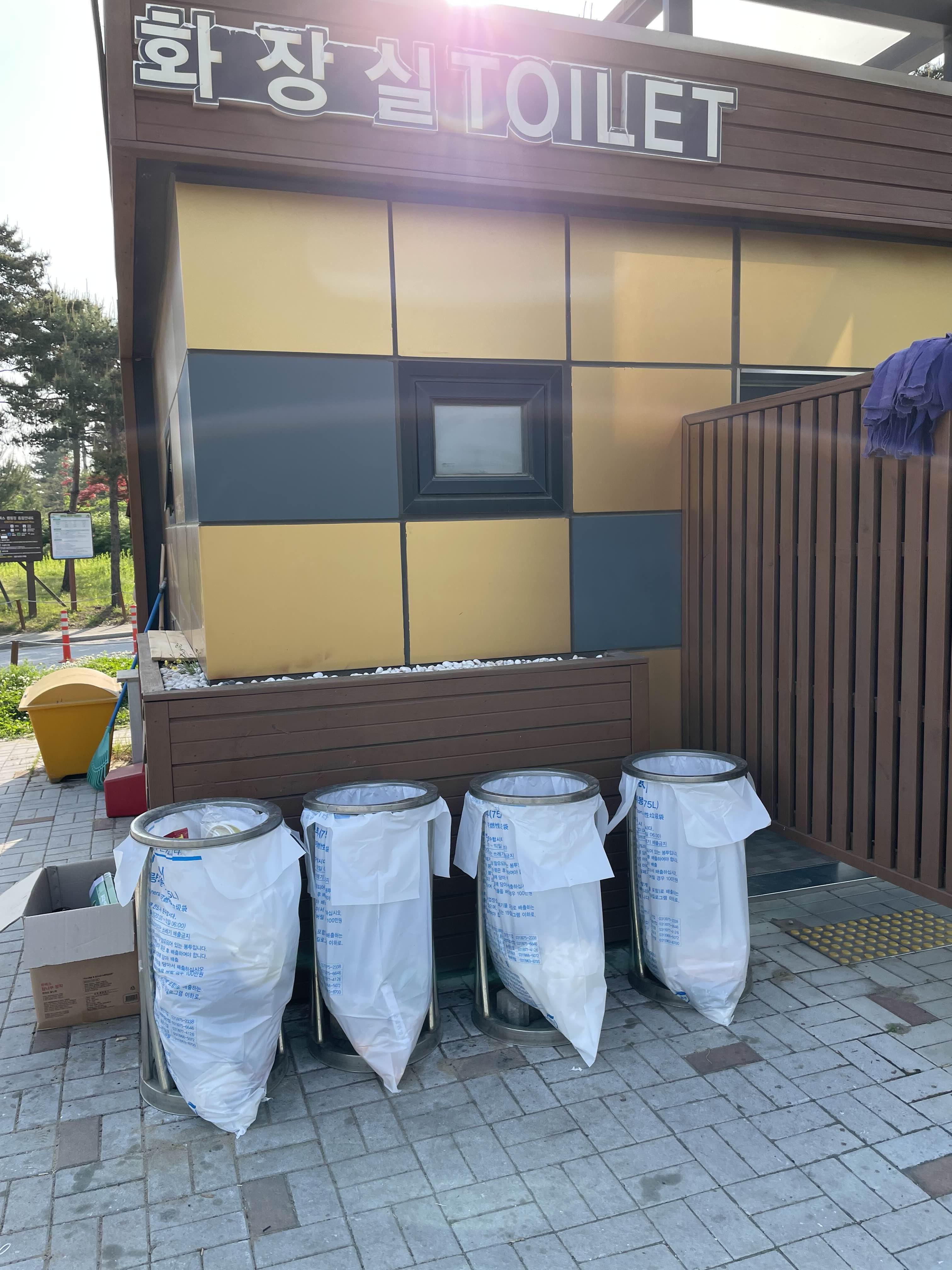 관리실에서 체크인 시 쓰레기봉투를 따로 주지 않는데 편의시설 옆에 분리수거함과 대형 쓰레기봉투가 있어서 여기에 버려야 합니다. 가실 때 쓰레기를 담을 작은 봉투 하나 챙겨 가시면 모아서 버리기 좋으실 거예요.